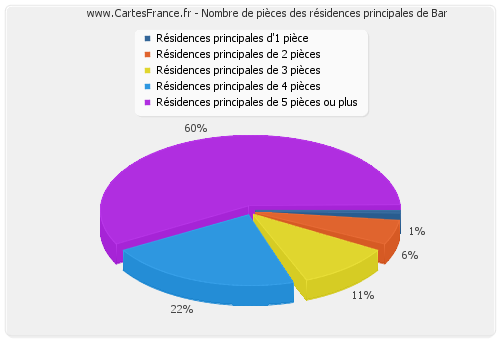 Nombre de pièces des résidences principales de Bar en 2007 :