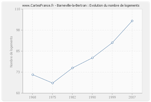 Le nombre de logements de Barneville-la-Bertran était de 103 en 2007, 90 en 1999, 81 en 1990, 75 en 1982, 66 en 1975 et 71 en 1968.