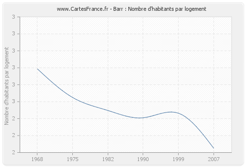 La Ville de Barr avait en 2007 une moyenne de 2,22 habitants par logement.