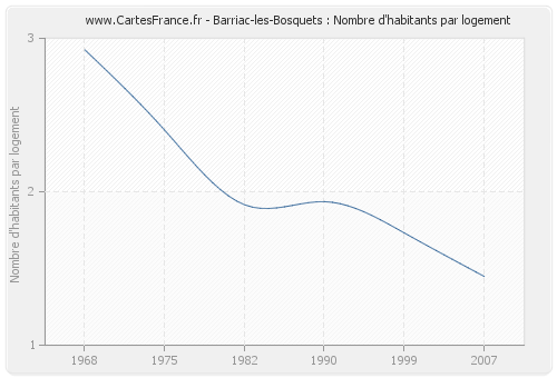 - Nombre d'habitants moyen par logement de Barriac-les-Bosquets en 2007 : 1,45