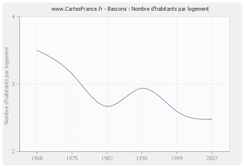 - Nombre d'habitants moyen par logement de Bascons en 1968 : 3,50