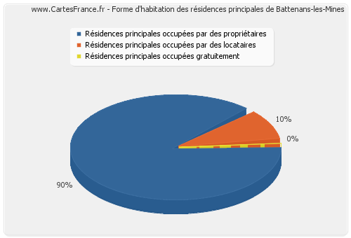 En 2007, 19 résidences principales de Battenans-les-Mines étaient occupées par des propriétaires.