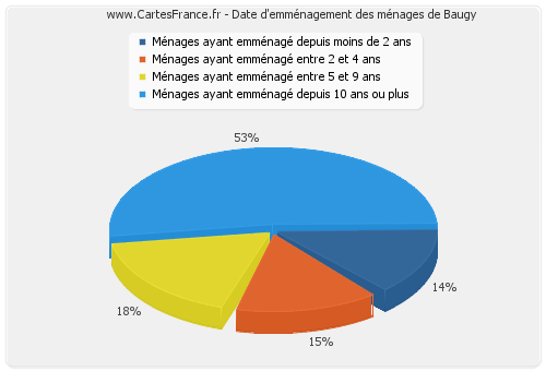 - Nombre de ménages de Baugy ayant emménagé depuis 10 ans ou plus : 291