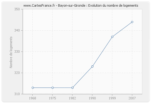 - Logements de Bayon-sur-Gironde en 2007 : 344