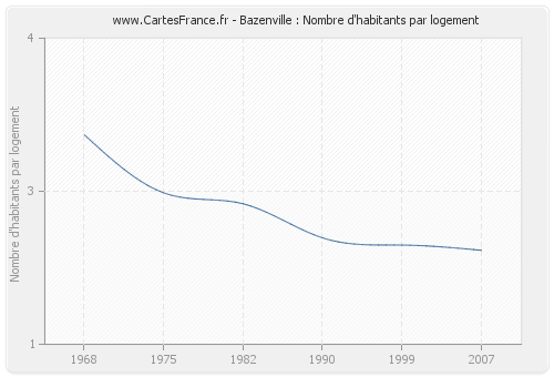 - Nombre d'habitants moyen par logement de Bazenville en 1968 : 3,05