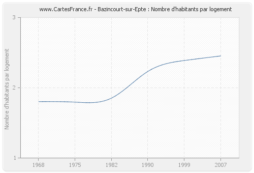 - Nombre d'habitants moyen par logement de Bazincourt-sur-Epte en 2007 : 2,45
