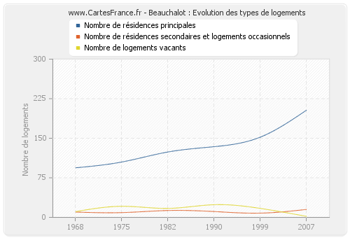 En 2007 les logements de Beauchalot étaient composés de 203 résidences principales, 15 résidences secondaires ou occasionnels ainsi que 2 logements vacants.