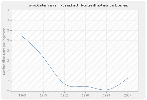 - Nombre d'habitants moyen par logement de Beauchalot en 1968 : 2,74