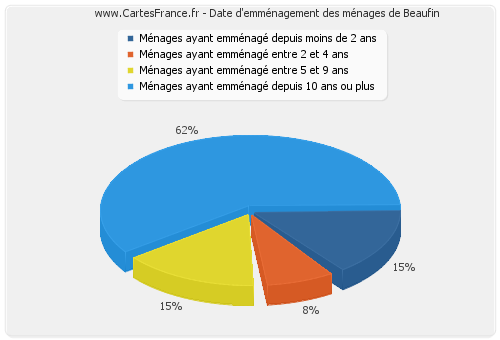 - Nombre de ménages de Beaufin ayant emménagé depuis 10 ans ou plus : 8