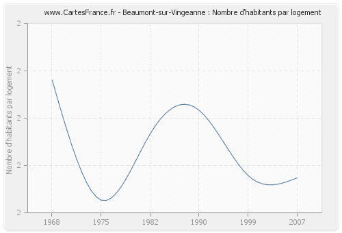 - Nombre d'habitants moyen par logement de Beaumont-sur-Vingeanne en 2007 : 1,59