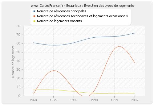 - Nombre de résidences principales de Beaurieux en 2007 : 72