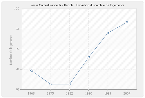 Historique du nombre de logements de Bégole de 1968 à 2007 :