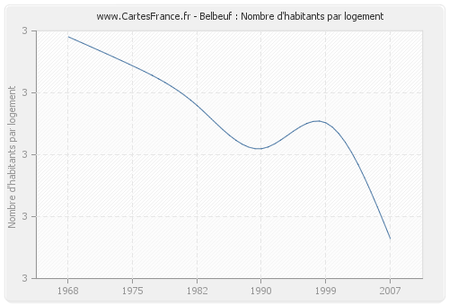 - Nombre d'habitants moyen par logement de Belbeuf en 1968 : 2,99