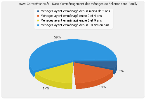 - Nombre de ménages de Bellenot-sous-Pouilly ayant emménagé depuis 10 ans ou plus : 52