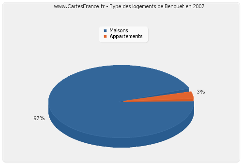 En 2007 les logements de Benquet étaient composés de 573 résidences principales, 16 résidences secondaires ou occasionnels ainsi que 30 logements vacants.