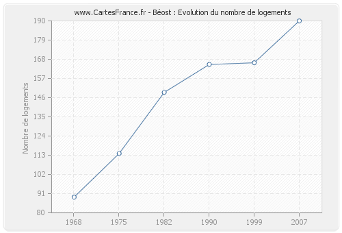 Historique du nombre de logements de Béost de 1968 à 2007 :