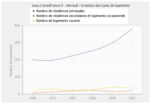 - Nombre de résidences principales de Berneuil en 2007 : 382