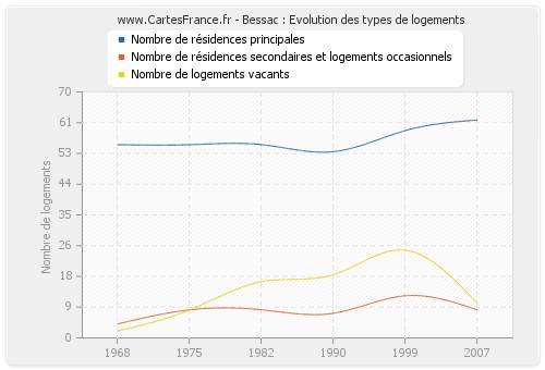 En 2007 les logements de Bessac étaient composés de 62 résidences principales, 8 résidences secondaires ou occasionnels ainsi que 10 logements vacants.