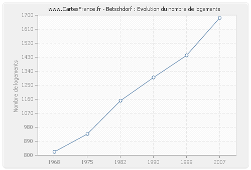Historique du nombre de logements de Betschdorf de 1968 à 2007 :