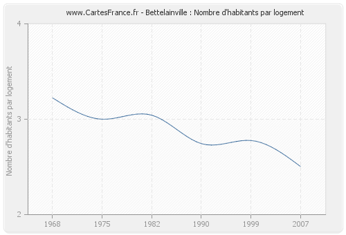 - Nombre d'habitants moyen par logement de Bettelainville en 1975 : 3,00
