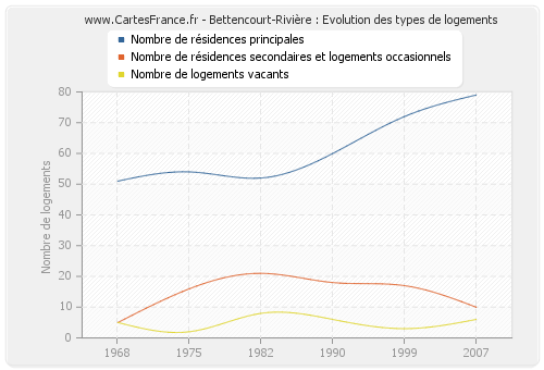 - Nombre de résidences principales de Bettencourt-Rivière en 2007 : 79