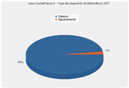 Les logements de Betteville étaient composées en 2007 de 194 maisons et 2 appartements.