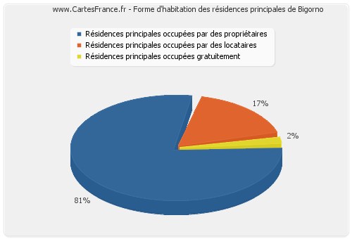 - Nombre de résidences principales de Bigorno occupées gratuitement : 1