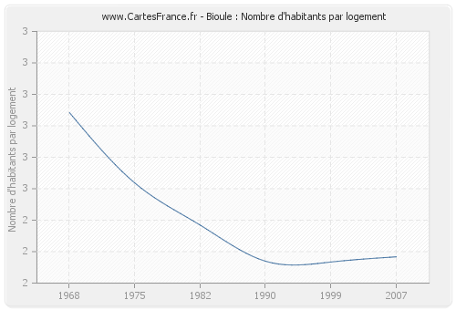 - Nombre d'habitants moyen par logement de Bioule en 2007 : 2,28
