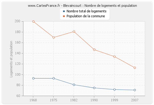 La population de Blevaincourt était de 113 habitants en 2007, 134 habitants en 1999, 147 habitants en 1990, 181 habitants en 1982, 170 habitants en 1975 et 200 habitants en 1968. Parallèlement, le nombre de logements de Blevaincourt était de 71 en 2007, 72 en 1999, 75 en 1990, 81 en 1982, 93 en 1975 et 93 en 1968.