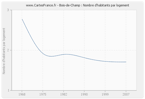 - Nombre d'habitants moyen par logement de Bois-de-Champ en 2007 : 1,71