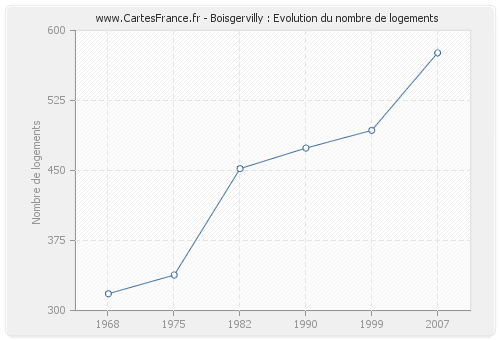 Historique du nombre de logements de Boisgervilly de 1968 à 2007 :
