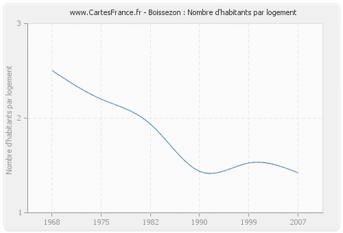 - Nombre d'habitants moyen par logement de Boissezon en 2007 : 1,42