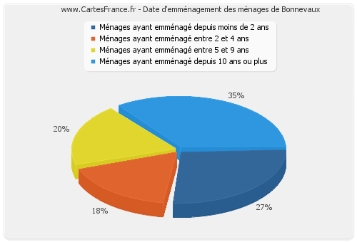 - Nombre de ménages de Bonnevaux ayant emménagé depuis 10 ans ou plus : 18