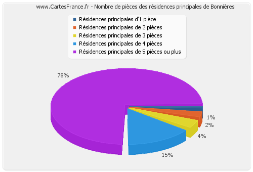 Nombre de pièces des résidences principales de Bonnières en 2007 :