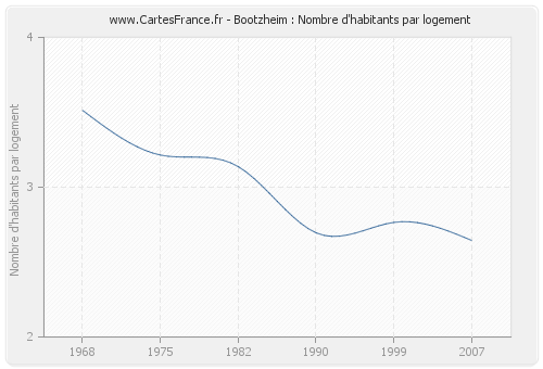 - Nombre d'habitants moyen par logement de Bootzheim en 2007 : 2,64