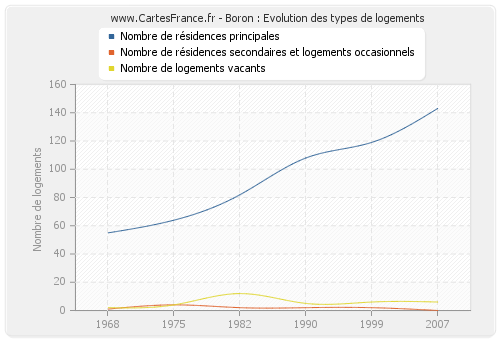 En 2007 les logements de Boron étaient composés de 143 résidences principales, 0 résidences secondaires ou occasionnels ainsi que 6 logements vacants.