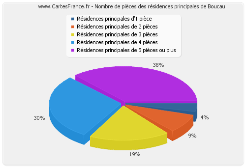 Nombre de pièces des résidences principales de Boucau en 2007 :