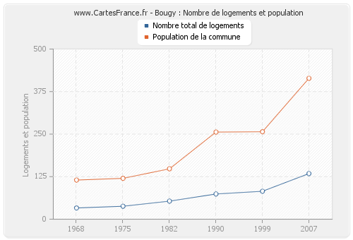 Historique du nombre de logements de Bougy de 1968 à 2007 :