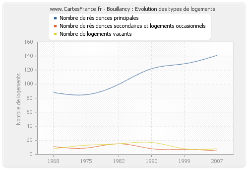 - Nombre de résidences principales de Bouillancy en 2007 : 141