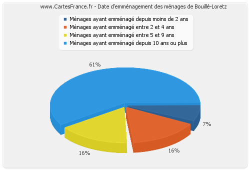 - Nombre de ménages de Bouillé-Loretz ayant emménagé depuis moins de 2 ans : 33