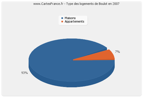 Les logements de Boulot étaient composées en 2007 de 221 maisons et 17 appartements.
