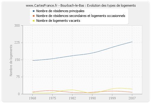 Historique du nombre de logements de Bourbach-le-Bas de 1968 à 2007 :