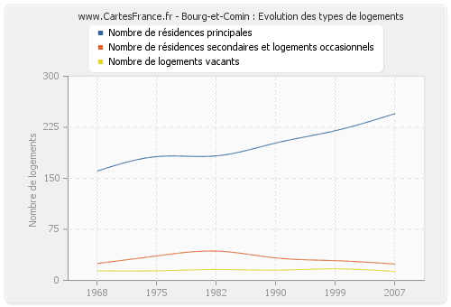 Historique du nombre de logements de Bourg-et-Comin de 1968 à 2007 :