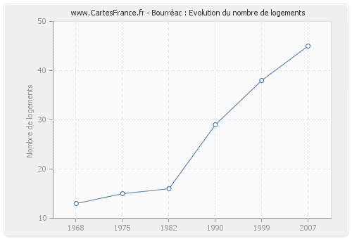 Historique du nombre de logements de Bourréac de 1968 à 2007 :