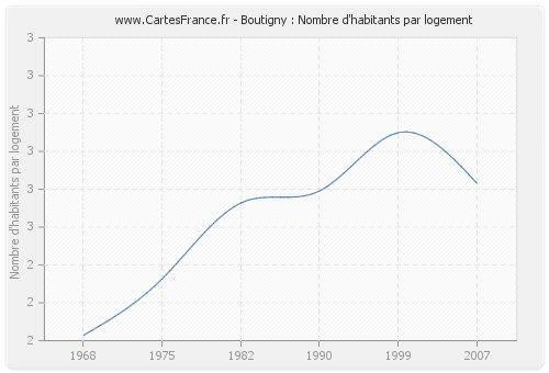 - Nombre d'habitants moyen par logement de Boutigny en 1968 : 2,21