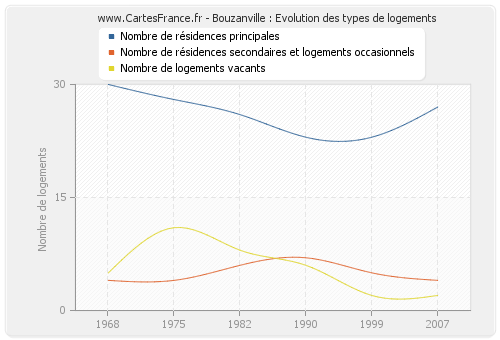 Historique du nombre de logements de Bouzanville de 1968 à 2007 :