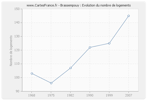Historique du nombre de logements de Brassempouy de 1968 à 2007 :