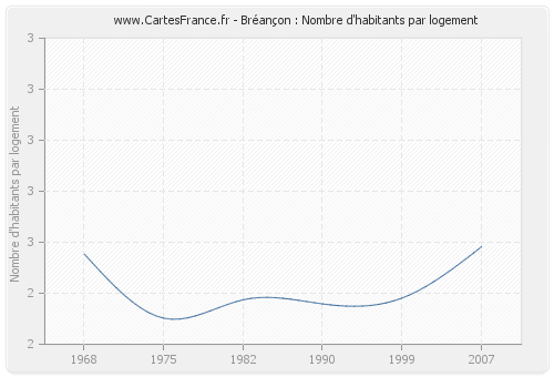 Le Village de Bréançon avait en 2007 une moyenne de 2,52 habitants par logement.