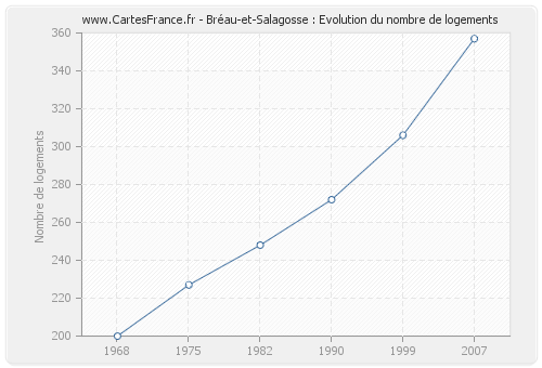 Historique du nombre de logements de Bréau-et-Salagosse de 1968 à 2007 :