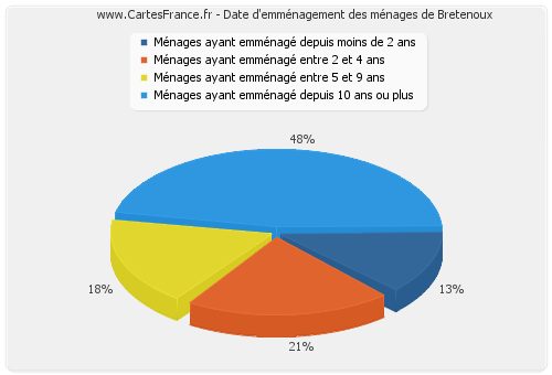 - Nombre de ménages de Bretenoux ayant emménagé depuis 10 ans ou plus : 300
